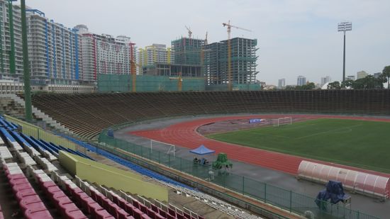 die an diese Opfer hier erinnern soll, im Innern weitere 5000 Schädel und zahllose Knochen auf insgesamt 17 Ebenen verteilt. Zum Schluss noch ein kurzer, nachdenklich Stimmender Film im Museum, bevor wir dann am sogenannten Russen Markt vorbei, einst der Schnäppchenmarkt für Kopien von Designerprodukten, heute eher eine knapp ½ qkm grosse Schlussverkaufswarenwühlkistenramschbude, zum S21, dem Tuol Sleng Genocide Museum fahren (E=$8pP incl. Audio Guide),
