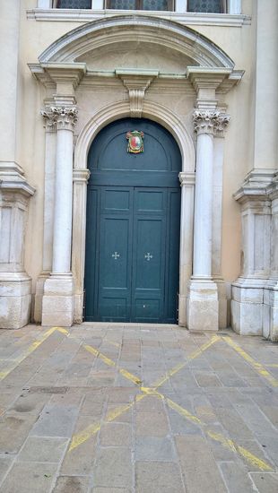 Die Messe in der Kirche ist gerade aus und schon ist die Tür verschlossen. Schade, so können wir nur von Außen schauen.