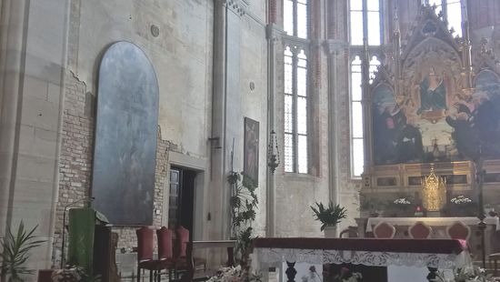 Durch die Calle Generale Chinotto, Calle Gorizia, Calle del Carnaro über eine Brücke über den Canale di S. Elena in die Viale S. Elena, vorbei an einem Militärgelände zur Chiesa di S. Elena, die geöffnet ist und die wir darum natürlich anschauen.