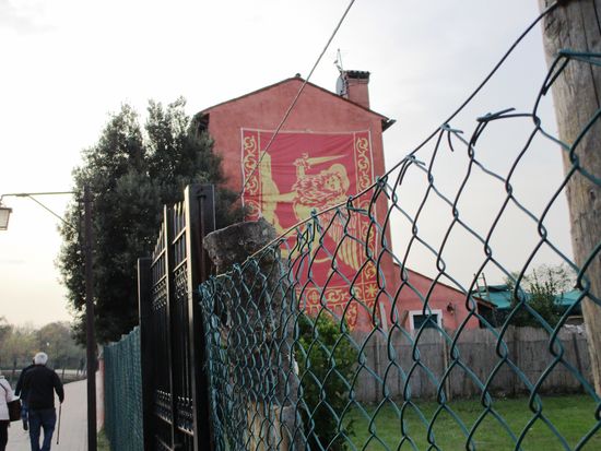 Wenn man auf Torcello ankommt, gibt es nur einen Weg, am Kanal entlang, zum Zentrum – Strada della Rosina. Wir passieren die Taverna Tipica Veneziana, sieht nicht sehr einladend aus, das Ristorante Al Trono di Attila mit einem sehr freundlichen Wirt. Dann entdecken wir ein sehr schönes Geschäft. Ein Schild informiert darüber, dass das Haus 2004 der Nostra Signora Regina di Fatima geweiht wurde. Anneken hat ein Auge auf ein grünes Kleid geworfen, in mehreren Teilen und ich erstehe einige Taschentücher. Anneken probiert das Kleid an, es sieht super aus und wird gekauft. Wir können die Tüte mit unseren Errungenschaften in dem Laden lassen und auf dem Rückweg wieder abholen.