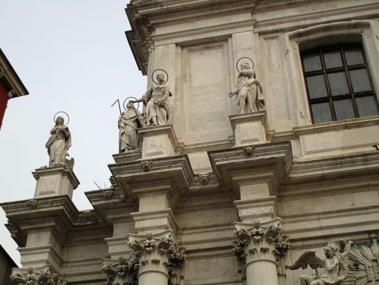 Santa Maria Assunta ist eine riesige Kirche im Stadtteil Cannaregio, am Campo dei Gesuiti. Sie ist wegen ihrer charakterischen Marmorverkleidung berühmt. Nach vielen Fotos von der Außenfassade schauen wir uns die Kirche an. Sie hat geöffnet, kein Eintritt wird verlangt. Wir machen eine kleine Spende und zünden auch einige Kerzen für liebe Menschen an. Obwohl ich all diese Kirchen schon xmale angeschaut habe, bin ich immer wieder überwältigt von der Pracht.