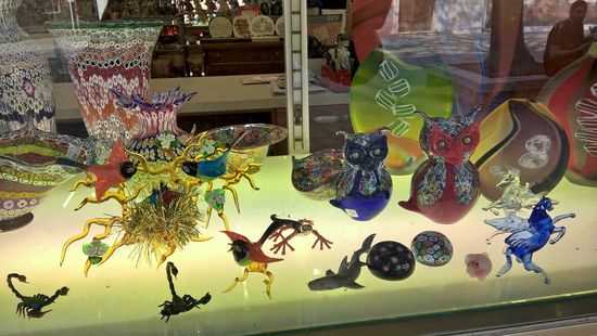 Unfassbar - China-Ramsch, ich mag das gar nicht. Entweder echtes Murano-Glas oder gar nichts. Dazwischen hängt an einigen Häusern die Wäsche zum Trocknen auf der Straße. Wir machen überall Fotos. Natürlich sieht man nicht nur schöne Kunstwerke, sondern auch viel Kitsch, eben für jeden Geschmack etwas.
