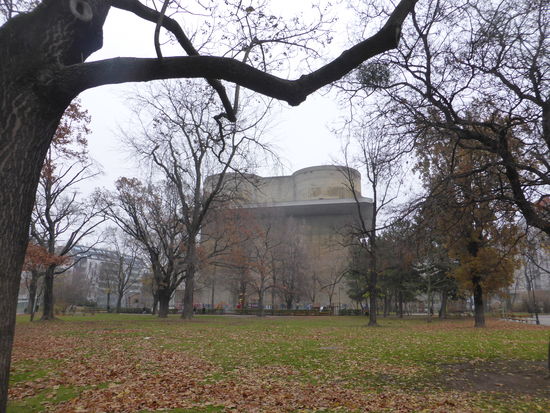 Schon auf der Stadtrundfahrt wurden wir aufmerksam gemacht auf zwei der wenigen erhaltenen Flaktürme aus dem WKII. Im Arenberg-Park können wir uns den 'Baldrian' - wie er mit Decknamen genannt wurde - ansehen.
