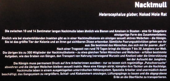 Durch ein Gewirr von zahlreichen Röhren von etwa 5 cm Durchmesser 'rasen' mäuse- oder rattenartige Tiere - Nacktmulls - vonn denen wir noch nie gehört haben.