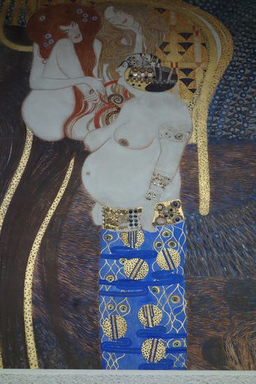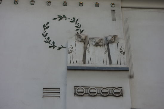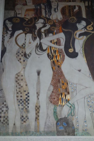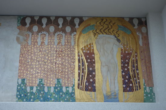 Ein Hauptwerk daraus ist der Beethovenfries von Gustav Klimt, den er eigens für diese große Gruppenausstellung geschaffen hat. (Stirnseite)