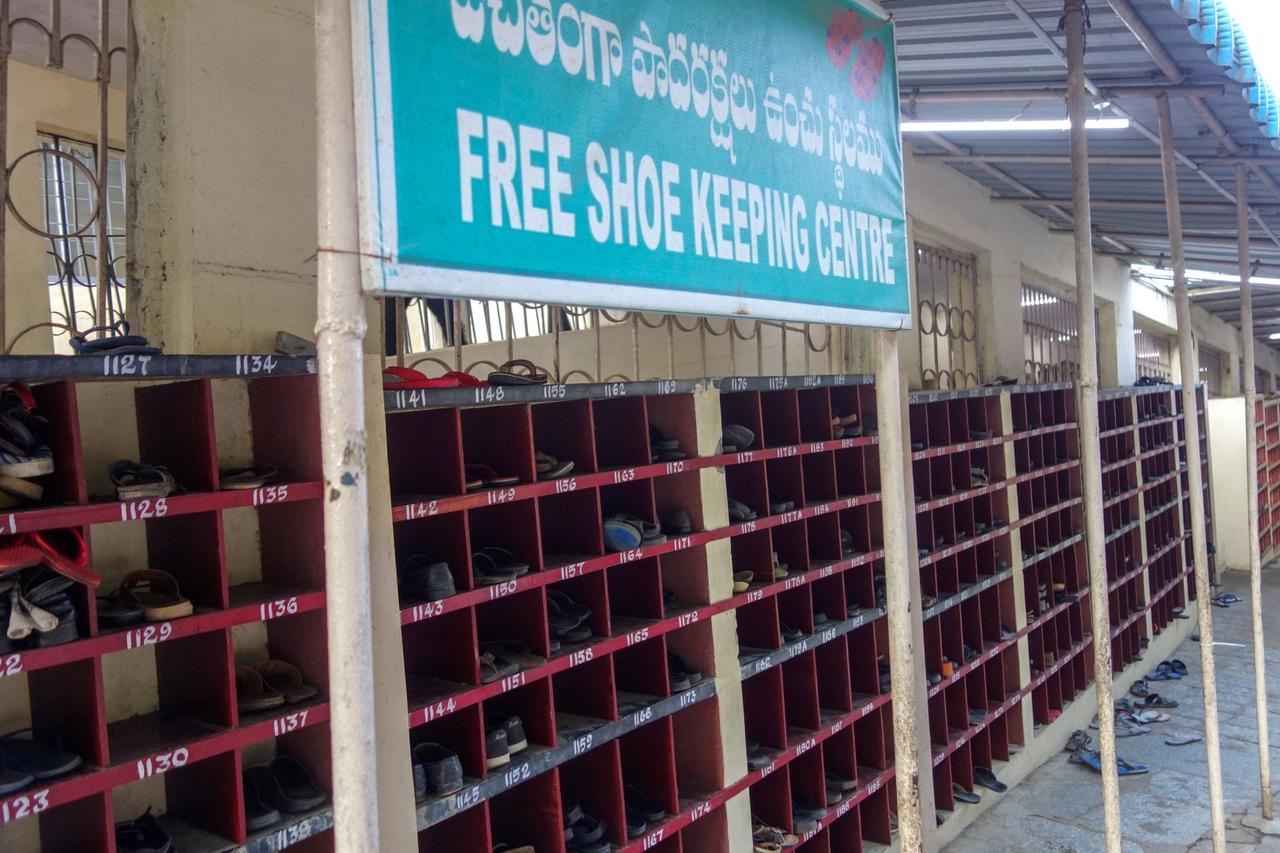Eine Vorschrift mit der ich schon öfters in Konflikt kam, ist das Verbot von Schuhen im Tempelbereich. Ist mir durchaus sympathisch, seit meiner Kindheit bin ich nicht mehr soviel barfuß gelaufen. Habe aber manchmal Probleme zu erkennen wo der Tempelbereich beginnt. Oben in Tirumala habe ich mal versehentlich meine Sandalen im Tempelbereich abgestellt. Als ich zurückkam fand ich diese im Abfalleimer. Ein Herr klärte mich auf „you came to this place and you know nothing“ - du kommst hierher und weißt von nichts. Inzwischen habe ich einen kleinen Rucksack dabei, vermute ich auf dem Gelände „viele Tempelbereiche“ so tue ich die Sandalen dort rein, auch weil ich den Ort wo ich sie stehengelassen habe manchmal schlecht wiederfinde.