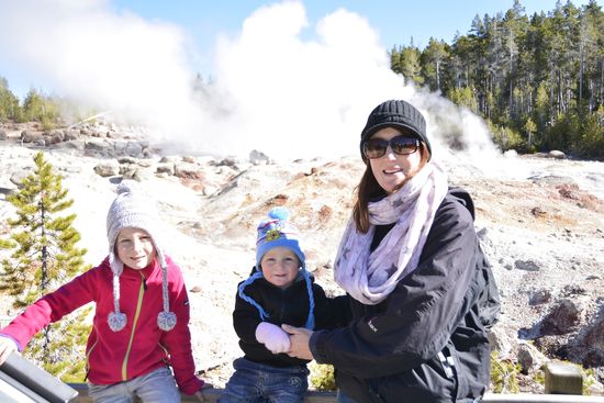 Am nächsten Morgen sind wir mit viel Schnee erwacht und die Kinder wollten sofort raus und Schneemann bauen. Anschliessend fuhren wir nach West Ghumb-Lake Village-Canyon VIllage-Mt Washbourne-Tower Rossevelt und Mammoth Hot Springs. Jeweils mit Zwischenstopps bei Mudpools und anderen Attracktionen. Zwischen Tower Roossewelt und Mammoth HotSpring sind wir an vielen Buffalo Herden, Hirschen, Rehe vorbeigefahren und haben diese auch beobachtet. In Mammoth kamen die Hirsche/Rehe ins „Dorf“ und standen/lagen auf den Grünen Flächen herum. Dort auf dem Campingplatz übernachtet.