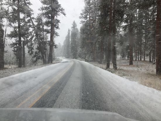 Aufgestanden mit dieser Grandiosen Aussicht und wir wollten die Route über den Berg fortsetzen aber die Strasse wurde noch schlechter, plötzlich waren wir im Schnee, hatten grosse Wasserlöcher vor uns. Wir mussten uns den Weg frei machen Meter für Meter mit Fuchsschwanz und Machete, rutschen teilweise ab und hatten für den Weg 5h… Tja andere bezahlen viel für so ein Abenteuer. Wir waren froh, dass wir „heil“ durchgekommen sind. Auf dem Weg haben wir Bob kennen gelernt er bot uns seine Hilfe an Bob kommt an den Wochenenden oft hierhin und beobachtet Bären und Fotografiert. Er gab uns einige Tipps wo eventuell Bären anzutreffen sind. Als wir raus waren vom Berg gingen wir an die Stelle wo uns Bob gesagt hat, dort trafen wir ihn auch wieder. Er war schon der ganze Nachmittag dort und wartete aber es war kein Bär in Sicht. Somit fuhren wir weiter Richtung Yellowstone fuhren auf den Lewis Lake Campground, haben Feuer gemacht. Unsere Nachbarn hatten Kinder im gleichen Alter und Lina hat viel gespielt.