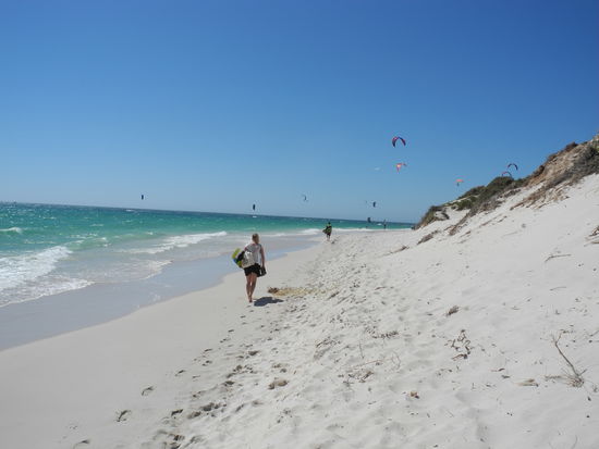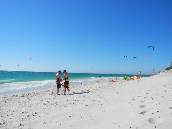 Nach einem kurzen Lunch fahren wir an den Pinnaroo Point. Da soll es sich gut kiten lassen... Unsere Erwartungen wurden nicht enttäuscht! Ein wunderschöner Ort! Jede Menge Kites, Wind und Sonne PUR!