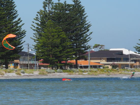 Heute sind alle ausser Debi an den Safetybay gefahren um zu Kiten. Debi machte sich mit dem Rennvelo vom Scarborough Beach auf den Weg. Nach 2h50 und 58km kam auch sie am Safetybay an. Dies war jedoch eine anstrengende Partie, da ein steter und teils böiger Gegenwind wehte...