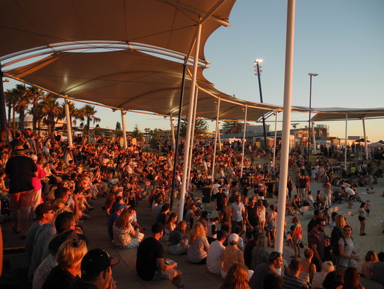 Zur Feier des Tages gehen wir am Abend an den Thursday Market direkt am Scarborough Beach! Diverse Foodtrucks und Marktstände stehen bereit und wir geniessen einen wunderschönen Sonnenuntergang mit vielen anderen, fröhlich-gestimmten Menschen!