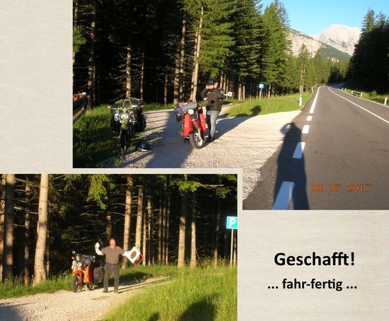 Für die Jungs eine ideale Gegend, da man auf die Sextner Dolomitengipfel nicht mit dem Moped hoch fahren kann.