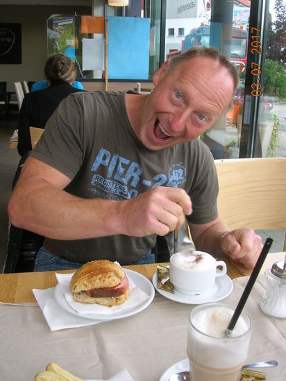 Käffchen und ein kleinen Magenfüller, denn das Fahren strengt an, auch wenn das keiner glaubt.