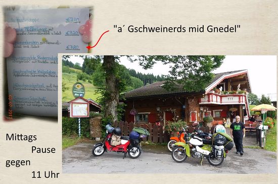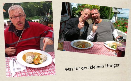 Nun gut, ... da wir extrem zeitig dran waren, sich sowohl das Gesäß, die Blase und auch der Magen meldete, kehrten wir spontan um und flogen in dem zu eben passierten netten Wirtshaus "Schnaidberger Alm" ein.