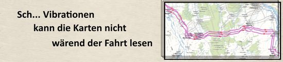 Der Nachteil beim voraus fahren ist es, dass man immer wieder auf der Karte nach einem geeigneten Weg suchen muss, was bei den Vibrationen die auf die Karte übertragen werden nicht einfach ist.