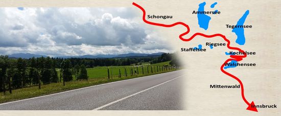 Bei Mittenwald führen wir dann am Karwendelgebirge Richtung Seefeld um dann ins Tief gelegene Inn-Tal hinab zu stürzen.