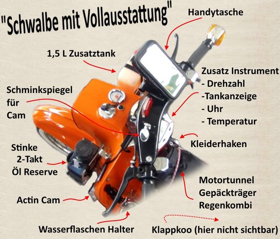 Auch an der Schwalbe gab es im laufe der Zeit einige Tourenmodifikationen, die allerdings die schlanke Silhouette weniger in Mitleidenschaft zog.