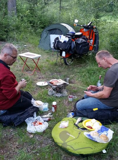 Der Grill wurde angeworfen und die Fressalien wurden aus den Untiefen der Packtaschen hervor gekramt. Das Fleisch war gut temperiert und mürbe gefahren.