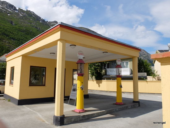 Wir passieren die Gedenkstätte an den norwegischen Literaturnobelpreisträger Knut Hamsun. "Im Jahr 2009 wurde das Gebäude mit einer großen Eröffnungsfeier anlässlich des 150. Jahrestags der Geburt Hamsuns fertiggestellt und durch die Kronprinzessin Mette-Marit eröffnet. Nach Fertigstellung der Ausstellungs- und Inneneinrichtung wurde das Zentrum dann am 13. Juni 2010 für das Publikum geöffnet. Der Bau wurde 2010 mit dem „International Architecture Award“ ausgezeichnet, 2011 mit dem norwegischen Statens byggeskikkpris." (de.wikipedia.org/wiki/Hamsun-Zentrum)