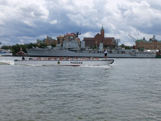 Nachdem wir so lange Zeit in der "Wildnis" verbracht haben, gönnen wir uns zwei Tage die Unruhe einer Großstadt und stürzen uns ins Getümmel. Da Göteborg ein sehr gut ausgebautes Radwegenetz haben soll, dürfen unsere Räder endlich mal wieder vom Auto runter. Einen ruhigen gebührenpflichtigen Stellplatz finden wir oberhalb des Zentrums am Skatansvägen. Mit Hilfe der Fahrräder kommen wir auf den gut ausgebauten und beschilderten Wegen im Zentrum zurecht und können in aller Ruhe die meisten Sehenswürdigkeiten bequem anfahren und bestaunen. Eine kleine Besichtigungstour im offenen niedrigen Paddan, die um die Zentrumsinsel herumführt und im großen Hafenbereich an den Landungsbrücken der Großfähren vorbeiführt, darf natürlich nicht fehlen.