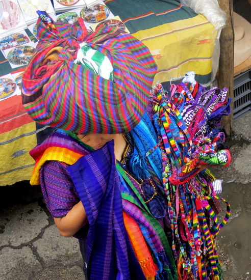 Der Markt in Chichicastenango - kurz Chichi genannt, ist in Touristenkreisen wohl allen bekannt. Auch ich mache mich auf, um dahin zu gelangen! An der Bushaltestelle erklärt mir ein Mann, wie ich dahin komme - zuerst nach Solalá, dann umsteigen nach Los Encuentros und weiter nach Chichi! Gesagt - getan! In Solalá rufen die Beifahrer die verschiedenen Endstationen auf - ebenfalls am 2. Umsteigeort. Hui - war es in Panajachel noch warm und sonnig - so verdunkelt sich der Himmel immer mehr - Nebelschwaden hängen tief hinunter und leichter Regen macht sich bemerkbar. In Chichi selber ist es denn auch etwas besser - der Nebelregen hat zum Glück aufgehört!