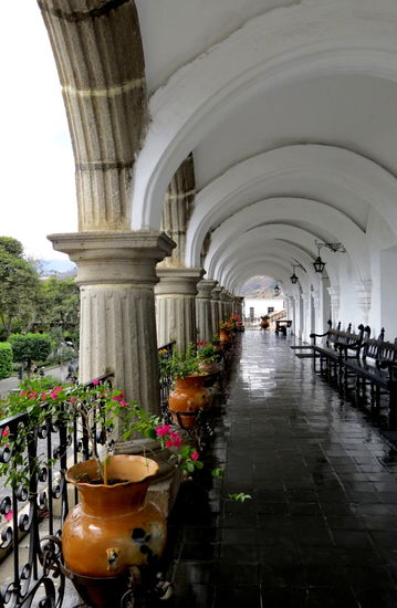 Das Wahrzeichen von Antigua - der Klosterbogen - ein geschlossener Gang, welche zwei Klosterteile miteinander verbindet. Über diesen Gang konnten die vielen Nonnen ungesehen hin- und hergehen. Der Bogen überstand die schweren Erdbeben. Heute sind in beiden Klosterteilen Hotels untergebracht.