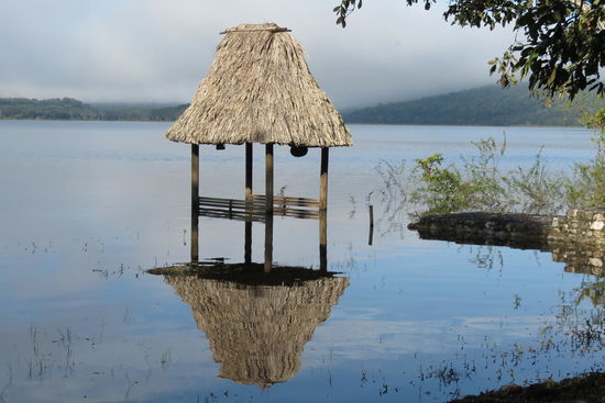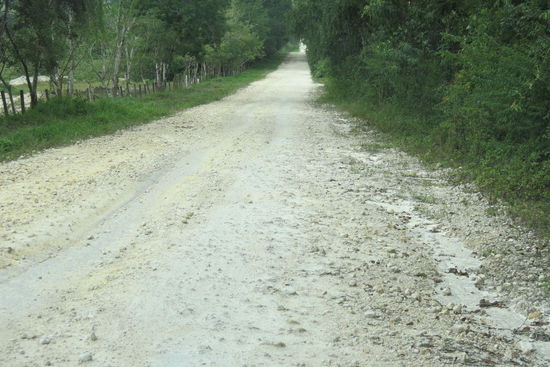 Die Strasse verläuft entlang der Lagunen Salpetén und Macanché. Unterwegs frage ich einen Polizisten, ob denn der Weg richtig sei? Alles klar, die Strasse biegt nach links ab auf eine Piste nach Norden zur Lagune YaxHá - "dem grünen Wasser"! Die Piste soll gut befahrbar sein...!