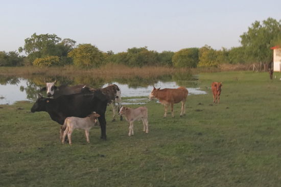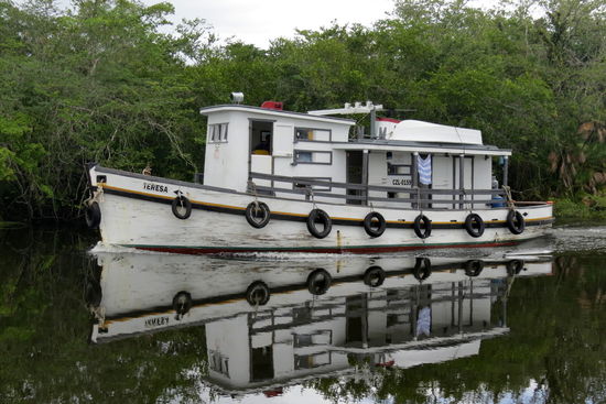 Das Leben am Fluss ist echt spannend - hin und wieder taucht auch ein Schiff auf dem Fluss auf - vor allem nachts transportieren sie Zuckerrohr auf angehängten Flössen!