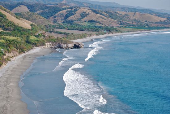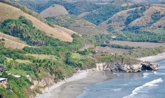 Nach vier Nächten auf dem Campingplatz muss ich mit Schrecken feststellen, das das Batterie-Ladegerät seinen Dienst quittiert hat. Eigentlich wären wir bereit zur Weiterfahrt - nur eben... - der Motor gurgelt ein paar mal leise, der Kühlschrank hat die Batterien vollkommen leergesaugt. Der freundliche Kanadier von nebenan ist sofort zur Stelle, und überbrückt mit seinem Wagen die Batterie. Wir durchqueren die Stadt - müssen aber noch einkaufen. Mit der Hoffnung, dass sich das Missgeschick nicht wiederholt, stellen wir uns auf den Parkplatz. Einkäufe getätigt und Leomobil startet problemlos. Irgendwo werde ich mir ein neues Ladegerät zulegen - bis jetzt habe ich noch keines gefunden. Knappe 300 km sind wir der Costa Michoacana entlang gefahren, eine kurvenreiche Bergstrecke mit z.T. atemberaubenden Ausblicken auf den Pazifik.