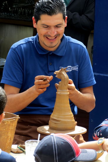 Dieser sympathische Herr verwöhnt eine ganze Kinderschar mit allerlei von ihm gefertigten Tonfiguren
