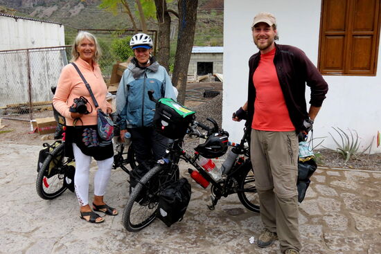 Wer winkt denn da? Wir treffen im hintersten Winkel der Mision San Javier zwei Schweizer Radler - Sabine und Marcel! Sie sind seit 2 Jahren mit ihren Fahrrädern unterwegs. Begonnen hatten sie in Südamerika, sind dann von Kolumbien nach Alaska geflogen und mittlerweilen sind sie wiederum in Mexico. Schön, euch hier zu treffen! Wir plaudern ein wenig und laden die Beiden zum Kaffee ein.
