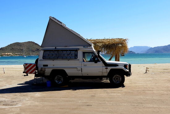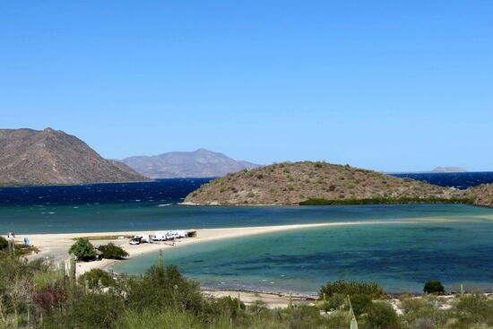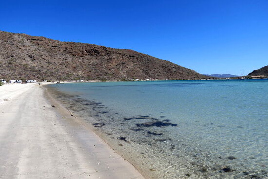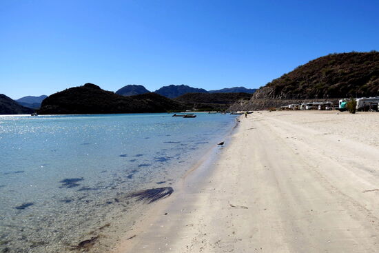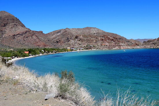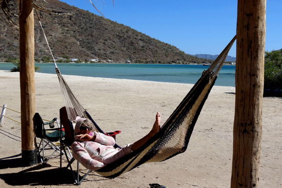 Wir campieren an der Bahia de Concepción. Tagsüber ist es recht warm, vor allem abseits des Windes. Mal wieder so richtig geniessen - und auch kulinarisch lassen wir uns im nahen Restaurant verwöhnen.