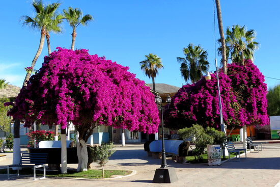 Im Juli und August soll es hier drückend heiss sein. Allerdings bilden die Palmen und Bäume entlang des Mulegé-Flusses eine angenehme Oase. Sehenswert ist die alte Missionskirche sowie der Dorfkern.