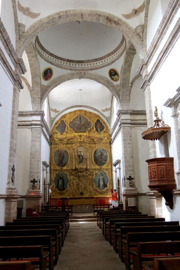 Nach ca. 120 km sind wir in San Ignacio, ein Muss, hier zu halten. Im kleinen Zocaló stehen ausladende Lorbeerbäume, welche in den Hitzemonaten erquicklichen Schatten spenden. Auf der gegenüberliegenden Seite steht die Dominikanerkirche, welche 1786 aus Lavastein an Stelle einer Jesuitenmission erbaut wurde. Die Kirche ist ein eher selten gewordenes Beispiel aus der Kolonialzeit der Spanier.