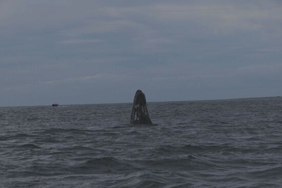 Am andern Morgen heisst es zeitig aufstehen, wir fahren mit Booten hinaus, um Grauwale zu besichtigen. Es ist immer noch recht frisch und strak bewölkt. Die Fahrt hinaus zu den Walen dauert ca. eine halbe Stunde. Insgesamt verweilen wir zwei Stunden draussen.