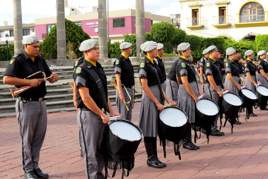 Die Bandas spielen mit ihren Cornets und Trommeln in der Schule bei besonderen Veranstaltungen und jeden Montag zur Fahnenhissung der Mexikanischen Flagge auf.