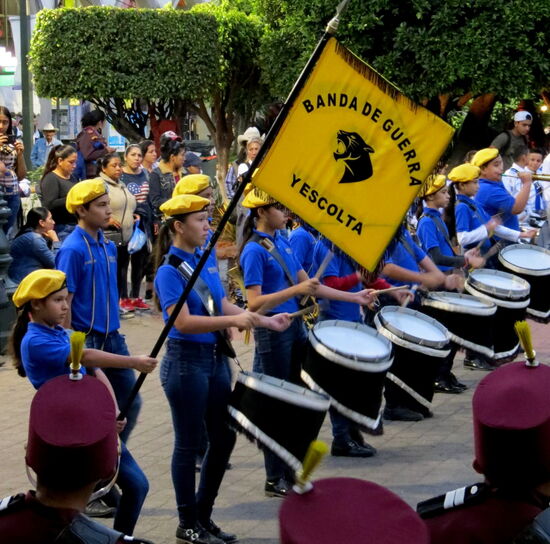 Tepic zeigt sich uns in den verschiedensten Bildern. Die Stadt ist interessant bei einem Tässchen Capuchino können wir uns dem geschäftigen Treiben der Leute hingeben. Auch wir decken uns mit dem Notwendigen ein. Gegen Abend wird es lauter auf dem Platz. Vor dem Regierungsgebäude werden die "Bandas de Guerra" von irgend einer Stadtpersönlichkeit geehrt. Es sind "Bands" von verschiedenen Schulen und der Polizei, welche zum Stelldichein angetreten sind.
