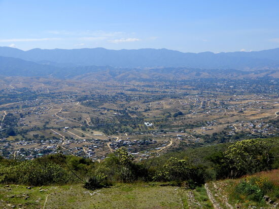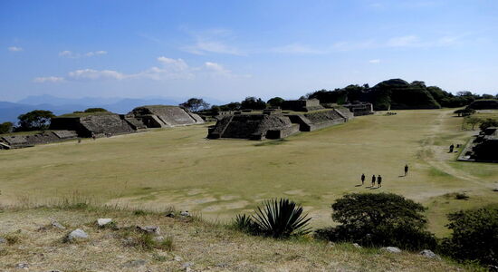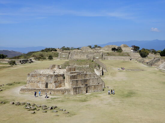 Der Ort liegt ca. 10 km ausserhalb der Stadt Oaxaca. Das flache Plateau wurde künstlich angelegt, das heisst, der Berg musste in mühsamer Handarbeit abgetragen werden, denn Rad und Pferd waren den Indigenen nicht bekannt. Dei abgetragene Fläche misst ca. 200 x 300 Meter. Schon in der Frühzeit von Monte Alban sollen hier ca. 10'000 Menschen gelebt haben. (500 - 100 v.Ch.) In der Blütezeit wird die Stadt auf 25'000 bis 30'000 Bewohner geschätzt. Die Prunkbauten auf dem Berg waren den Priestern und Herrschern vorbehalten. Später wurde der Ort zu einer Festung ummauert.