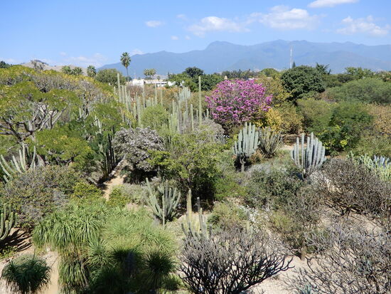 Er führt uns zurück in die Stadt Oaxaca. Die prächtigste Kirche in der Stadt ist die Iglesia Santo Domingo. Die Dominikaner waren die ersten Missionare in der 1522 von den Spaniern gegründeten Stadt. Sie versuchten die Indigenen durch Erziehung, nicht durch Gewalt zum neuen Glauben zu bekehren . Gleichzeitig sorgten sie auch für die Entwicklung der Stadt, bauten Aquädukte, um das Wasser in die Stadt zu bringen. Gleichzeitig machten sie die Stadt zu einem wichtigen Handelszentrum. Cochenille, der rote Farbstoff, den eine Laus auf einem Kaktus lebend, produziert, wurde neben Gold zu einem wichtigen Ausfuhrprodukt.