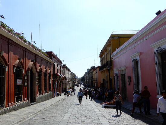 Oaxaca ist eine reizvolle Stadt, für Viele vielleicht die Schönste! Hier prallen indianische Lebenswelten und moderne Zeiten aufeinander, auch die koloniale Vergangeheit zeigt sich an jeder Ecke. Das Klima ist angenehm, die Stadt liegt auf ca. 1500 Metern Höhe. Zuerst erlaben wir uns an einem feinen Cappuccino direkt am Zocaló, welcher von dichten Lorbeerbäumen dicht beschattet ist. Es ist interessant, all den verschiedenen Menschen zuzuschauen, die daherflaniern oder ihren Geschöften nachgehen. Wir schlendern durch die Strassen, entlang all den farbigen Verkaufsständen. Ebenso statten wir der Kathedrale einen Besuch ab.