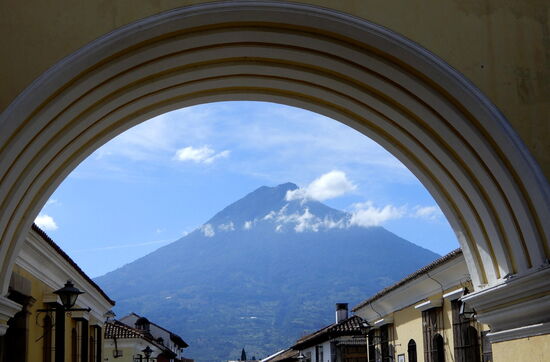 Umrahmt ist die Stadt von den 3 Vulkanen Agua, Fuego und Acatenango, welche der Stadt auch Zerstörung und Not einbrachten. 1773 wurde die Stadt durchn ein Erdbeben zerstört und der Sitz der Hauptstadt wurde ins heutige Guatemala City verlegt.