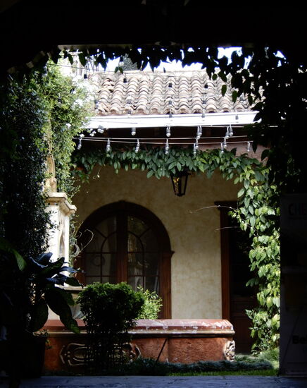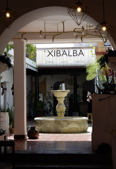 Im selben Haus sind verschieden Läden untergebracht. So kann man sitzend die angebotenen Waren bestaunen. Hier - guatemaltekische Malerei