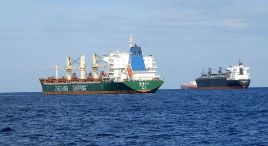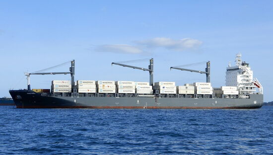 Ein toller Ausblick während des Kaffeetrinkens, ein Schiff verlässt den Kanal in Richtung Pazifik...