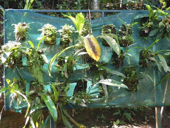 Leider sind die Pflanzen nicht beschriftet, ich vermute aber, dass hier Orchideen und Bromelien gezogen werden.