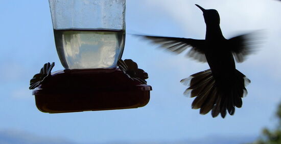 Während wir unsern Kaffee geniessen, dürfen wir dem muntern Treiben der Colibris zuschauen!