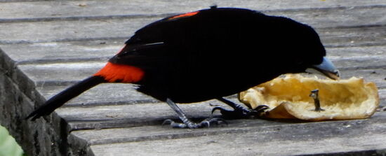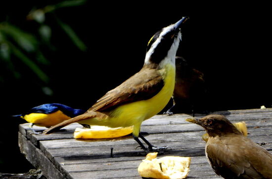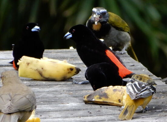 Bei einer Canopy-Tour-Talstation machen wir Rast und genehmigen uns einen Kaffee. Vor der Weiterfahrt entdecken wir eine interessante Fütterungsstelle für Vögel. Interessant, was wir da sehen!