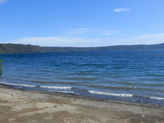 Tags darauf packen wir zusammen und fahren zur Lagune Apoyo. Vor rund 25'000 Jahren explodierte der Vulkan Apoyo und hinterliess ein gewaltiges Kraterloch. Bis heute ist nicht bekannt, wie tief die Lagune ist. Die Schätzung liegt bei ca 200 m Tiefe, was 70 m unterhalb des Meeresspiegels und somit zum tiefsten Punkt in ganz Zentralamerika läge.