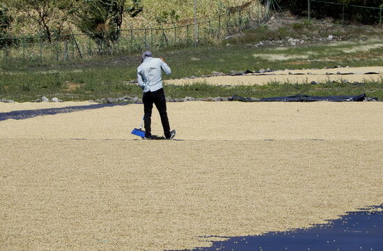 Die traditionelle Variante der Kaffeeaufbereitung sieht vor, die Kirschen des Kaffees so lange an der Sonne trocknen zu lassen, bis sich das Fruchtfleisch fast von selbst löst. Die roten Kaffeekirschen werden auf Zementböden, Kunststoffplanen oder gestampfter Erde - kleinere Mengen z.T. direkt an der Strasse - an die Sonne gelegt und regelmässig gewendet, damit sie gleichmässoig trocknen und nicht zu faulen beginnen. Die Sonnentrocknung kann bis zu fünf Wochen dauern und hat den Vorteil, dass kein Wasser gebraucht wird.