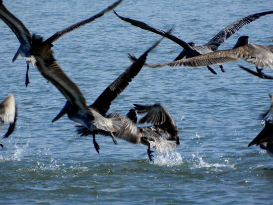 So tolpatschig wie die braunen Pelikane aussehen, umso flinker sind sie bei ihren Sturzflügen ins Wasser...