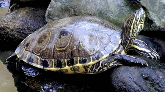 Eine Schildkröte heisst uns beim nahen Restaurant willkommen.